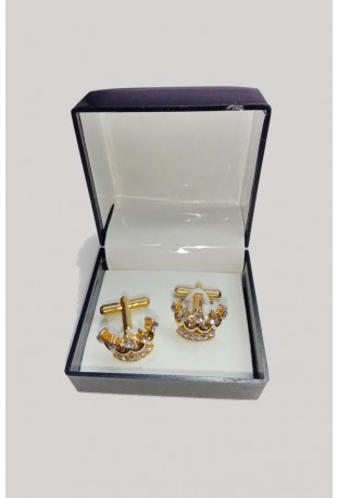 European and American Hip Hop Gold Plated Gold crown king Rhinestone-Embellished Cuff-links...