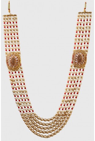 This festive wedding season I Groom necklace is also known by different names like Dulha mala, groom mala, moti mala, or Sherwani mala Truly very pretty and sure to give royal look on wedding. Add elegance and beautify your personality manifold by wearing this Necklace. Alloy based layered kanthimala in enhanced stone beads sherwani mala for men. Y..