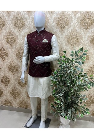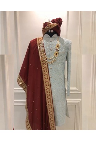 Mehroon White Sherwani