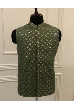 Mehndi Mirror Embroidered Nehru Jacket