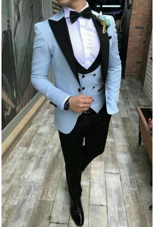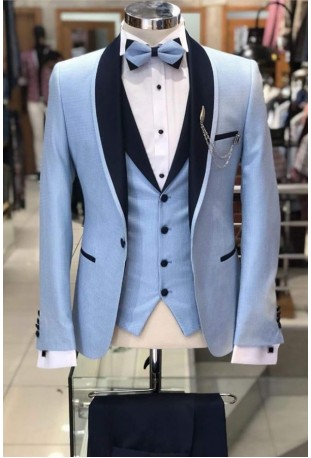 Sky Blue Tuxedo is made from TR Italian fabric and Black satin lapel with White satin cotton shirt It’s good for all seasons, including summers. The fabric is soft and has a great comfort feel to it. When you buy from us, we commit to giving you the best custom tailored suits online than the bad fitting readymade suits for men online. Rest assured,..