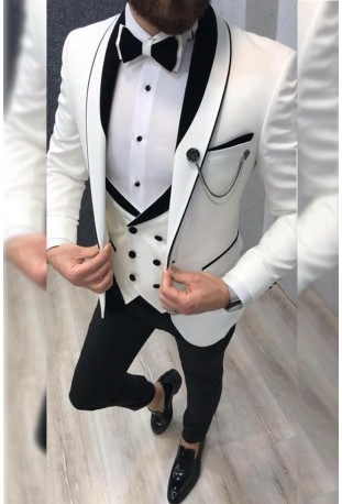 White tuxedo black contrast is made from siyaram satin fabric and White giza cotton shirt It’s good for all weather, including summers. The fabric is soft and has a great comfort feel to it. When you buy from us, we commit to giving you the best custom tailored suits online than the bad fitting readymade suits for men online. Rest assured, we keep ..