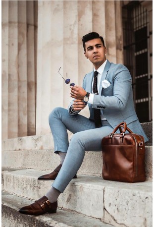 Greyish Blue 2-Piece Suit is made from Terry Rayon fabric. It’s good for all seasons, including summers. The fabric is soft and has a great comfort feel to it. When you buy from us, we commit to giving you the best custom tailored suits online than the bad fitting readymade suits for men online. Rest assured, we keep our quality promise and 100% cu..