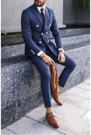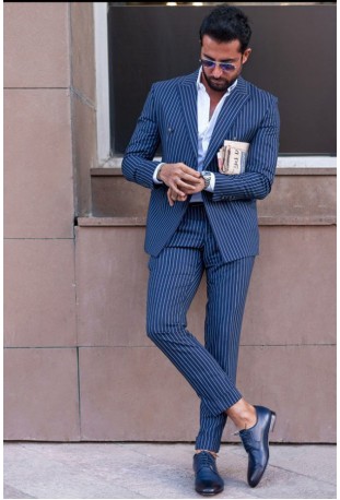 Blue Stripe Suit is made from TR Italian fabric. It’s good for all seasons, including summers. The fabric is soft and has a great comfort feel to it. When you buy from us, we commit to giving you the best custom tailored suits online than the bad fitting readymade suits for men online. Rest assured, we keep our quality promise and 100% customer sat..
