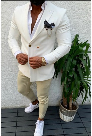 Off White Blazer is made from Terry Rayon fabric. It’s good for all seasons, including summers. The fabric is soft and has a great comfort feel to it. When you buy from us, we commit to giving you the best custom tailored suits online than the bad fitting readymade suits for men online. Rest assured, we keep our quality promise and 100% customer sa..