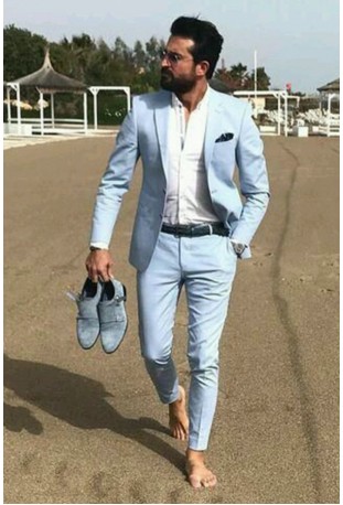 Sky Blue 2-Piece Suit is made from TR Italian fabric. It’s good for all seasons, including summers. The fabric is soft and has a great comfort feel to it. When you buy from us, we commit to giving you the best custom tailored suits online than the bad fitting readymade suits for men online. Rest assured, we keep our quality promise and 100% custome..